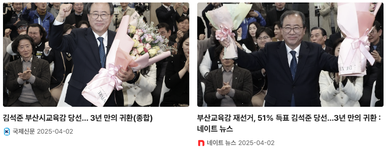 - 김 당선인은 "이번 교육감 선거가 탄핵 정국 속에서 치러지면서 시민의 관심을 모으는 일이 너무나 어려웠다"고 언급하며, "김석준 개인의 승리가 아닌, 민주주의와 부산교육을 지키기 위해 현명한 선택을 한 시민 여러분의 위대한 승리"라고 소감을 밝혔다.