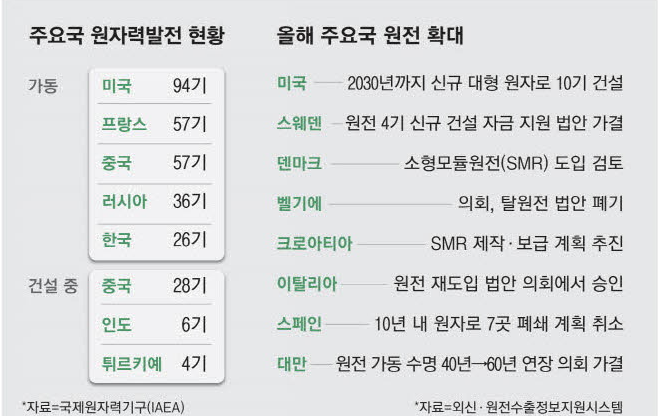 이탈리아, 덴마크, 벨기에, 스웨덴 등 유럽 각국이 속속 탈원전 정책을 폐기한 데 이어 미국도 대형 원전 10기 추가 건설에 나섰다.
