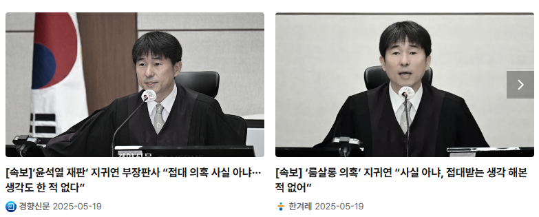 - 2025년 5월 19일, 윤석열 전 대통령의 내란 혐의 사건 4차 공판에서 지귀연 부장판사는 직접 룸살롱 접대 의혹을 부인.