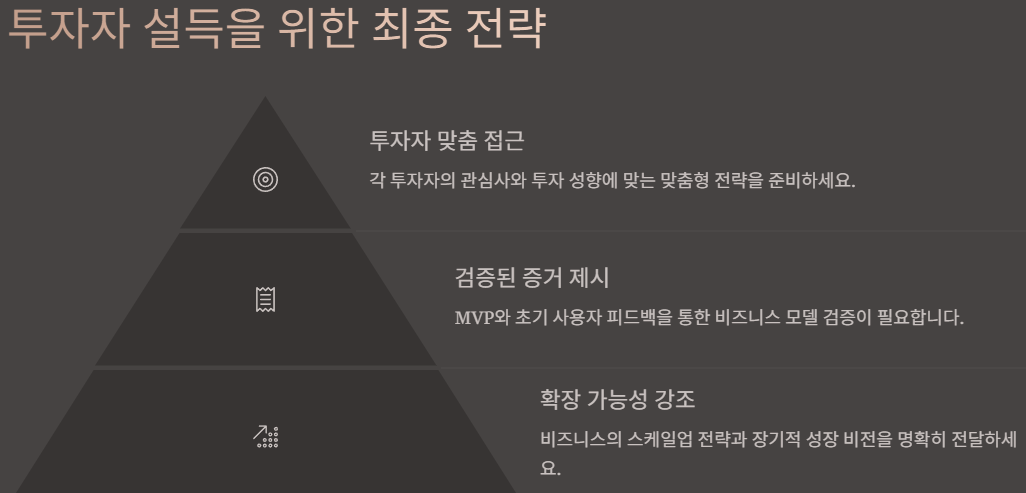 - 단순 낙관이 아닌, 시장 기반의 “매출 공식”을 증명해야 함
